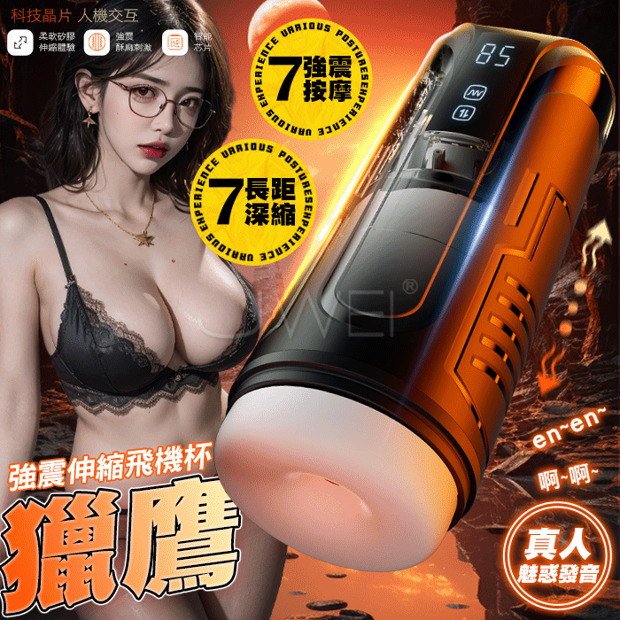獵鷹.7頻強震按摩+7頻長距伸縮 真人叫床聲肉感包裹飛機杯