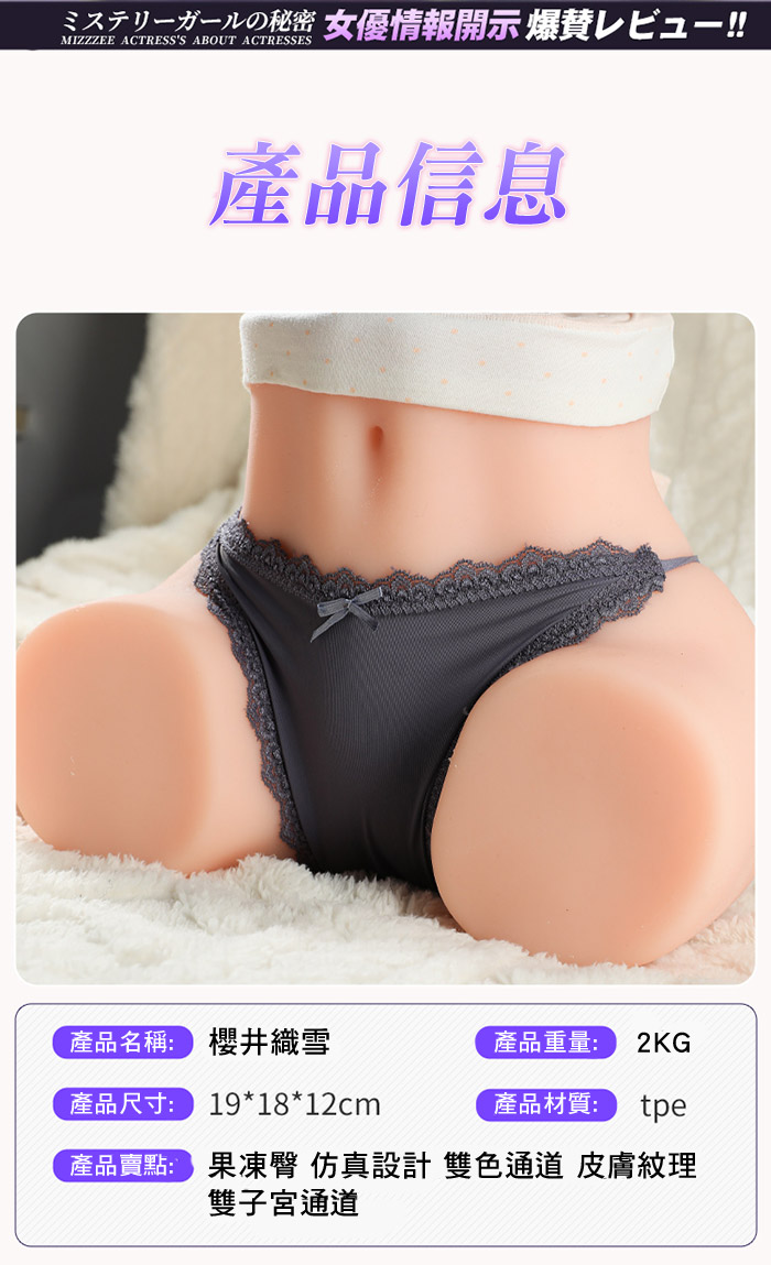 ►您現在的位置:首頁>謎姬 MizzZee.櫻井雅子.真人倒模三子宮通道陰肛雙穴液體果凍臀-約4.5kg