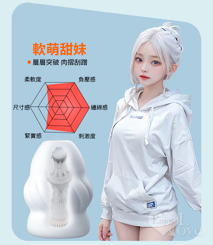 JIUAI 口袋女友 ‧ 軟萌甜妹 層層突破肉摺刮蹭小巧便攜自慰套﹝附贈6ml潤滑液﹞訓練器