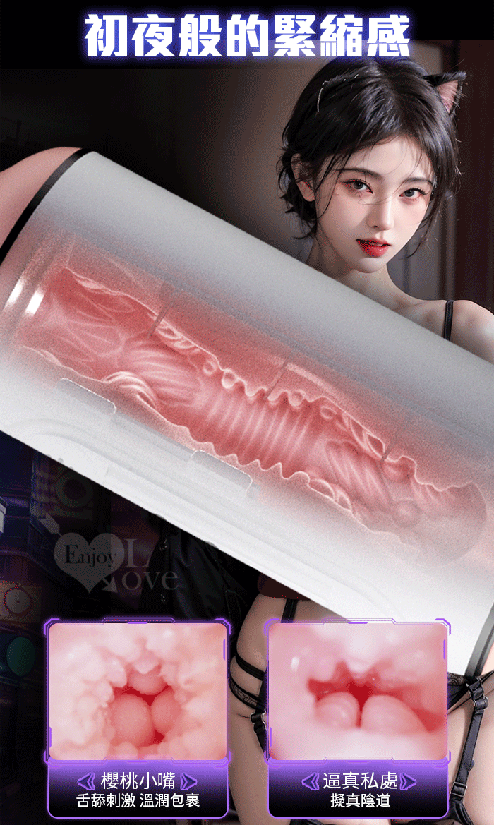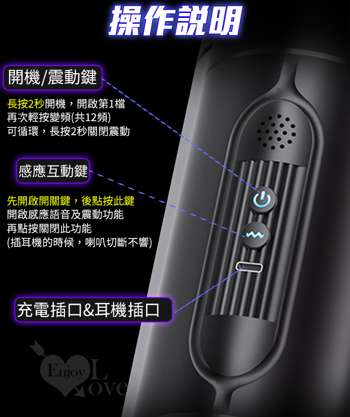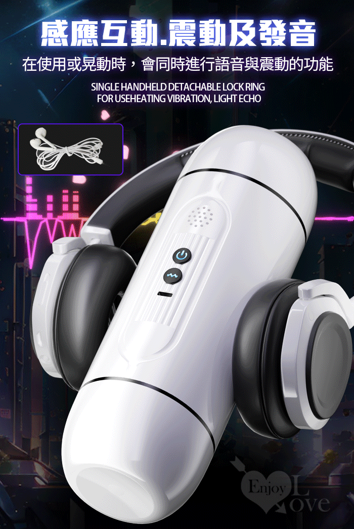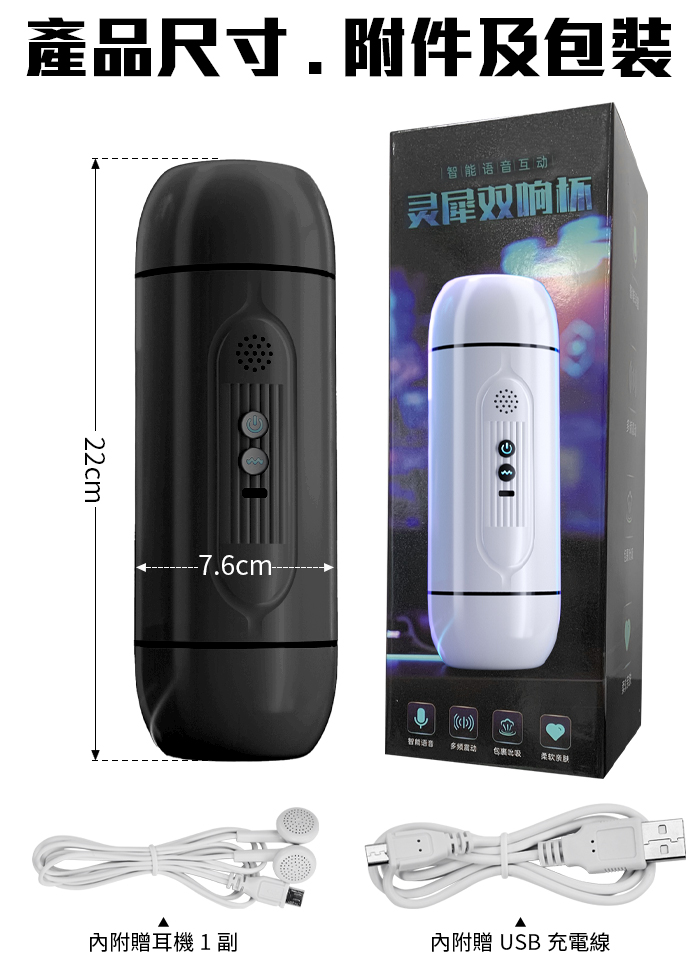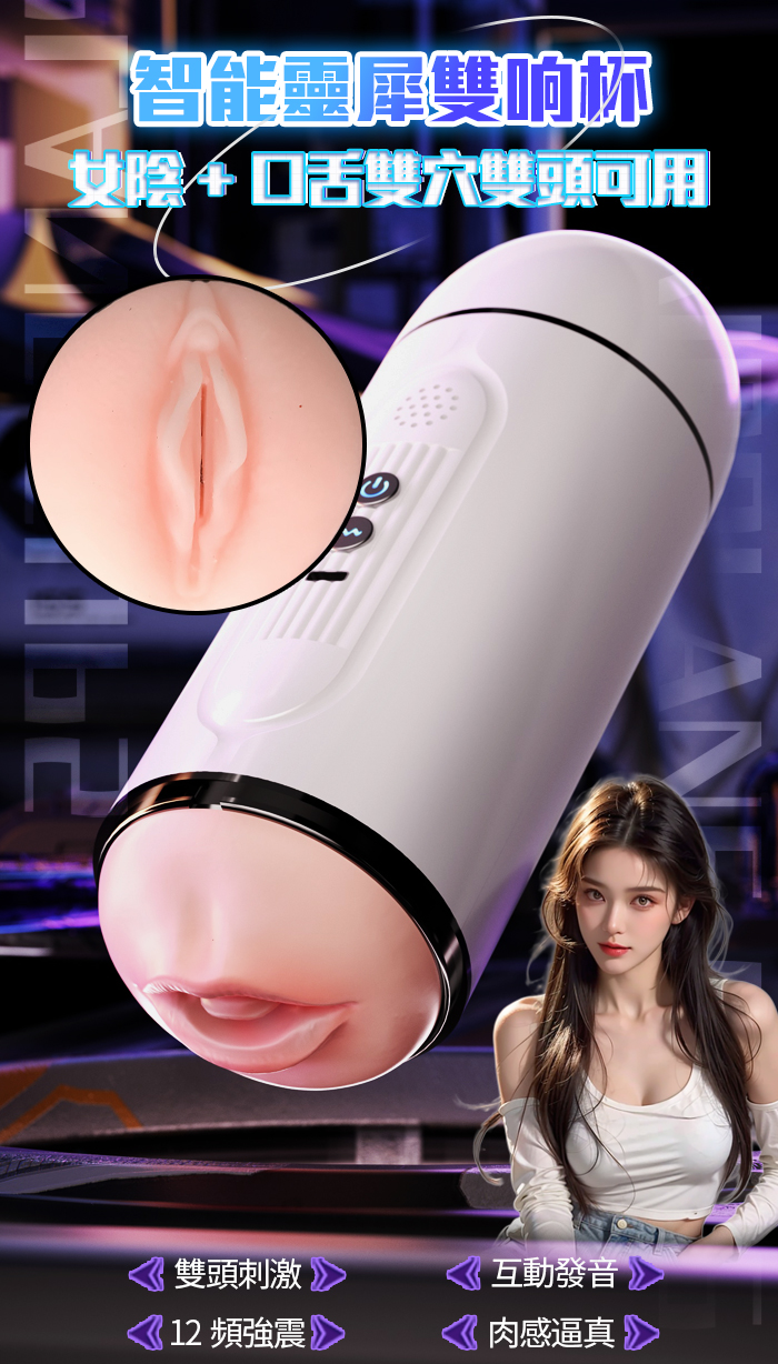 智能靈犀雙响杯 ‧ 女陰+口舌雙穴雙頭可用~肉感逼真通道鍛練自慰飛機杯﹝感應互動發音及震動/12頻激震/耳機+USB充電﹞
