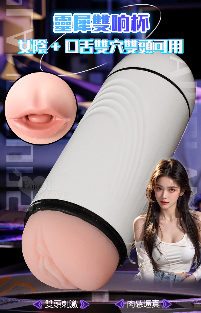 靈犀雙响杯 ‧ 女陰+口舌雙穴雙頭可用~肉感逼真通道鍛練自慰飛機杯﹝白﹞