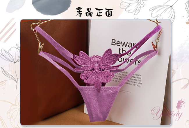 ►您現在的位置:首頁>甜蜜舞動!蝴蝶雙飛彈力細帶花卉網紗美臀T字褲﹝紫﹞