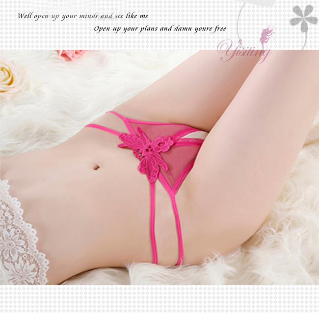 迷情綻放!雙彈力帶蝴蝶刺繡誘人露臀開襠丁字褲﹝粉﹞