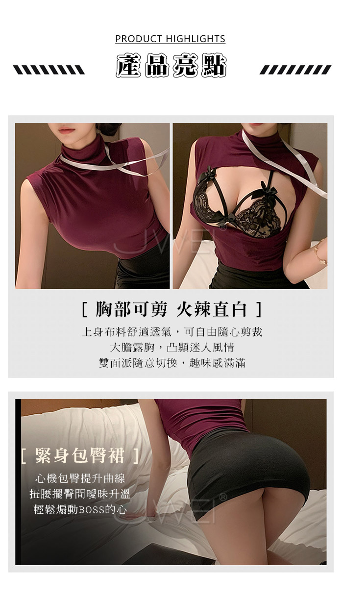 OL領域.挖空露腰美背撞色雙開衩包臀裙OL小秘制服套裝【上衣+領帶+包臀裙+內褲】