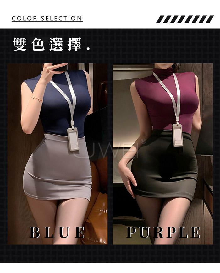 ►您現在的位置:首頁>情秘演繹.胸部可剪緊身包臀禁慾系OL秘書套裝-藍+灰【上衣+工牌+包臀裙+內褲】