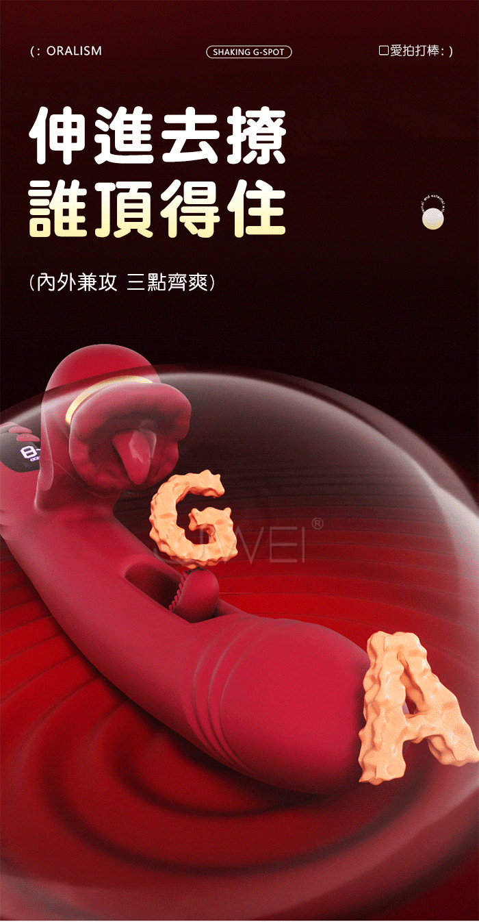 謎姬 MizzZee.口愛鏤空.9x9頻G點摳拍+舌舔強震 裹含外吟數顯屏按摩棒
