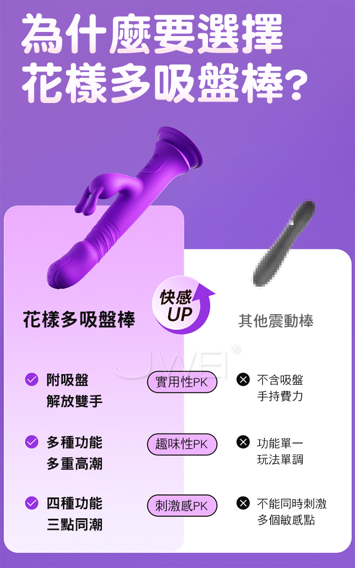 花樣多.10x10頻強力伸縮 G點狂攪 撩撥強震 兔頭拍打 激爽吸盤按摩棒
