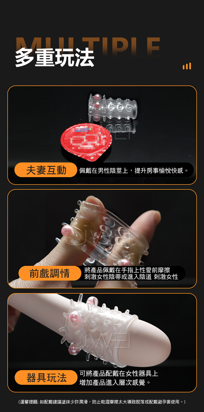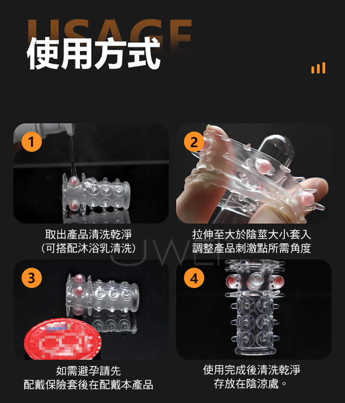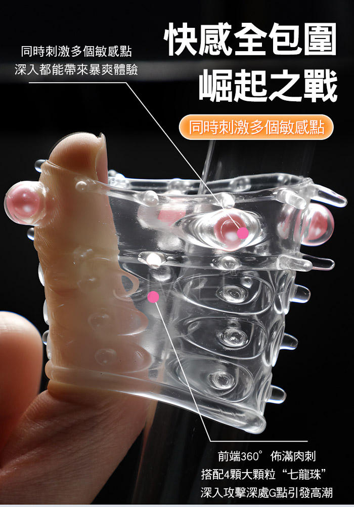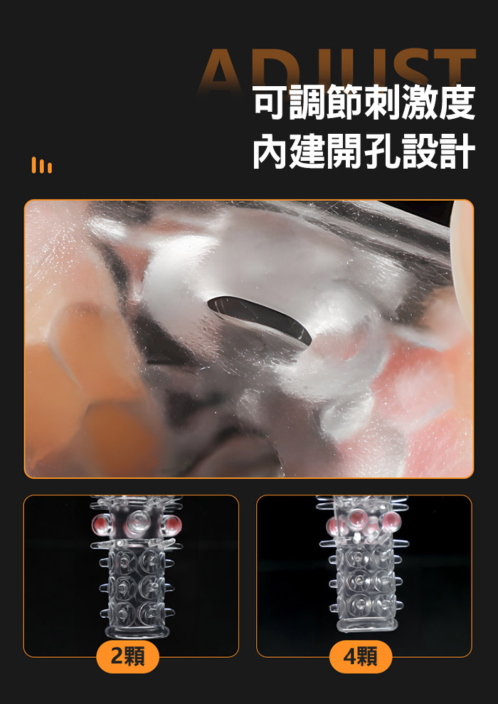 探索者.大顆粒刺激摩擦快感鎖精延時狼牙套-4入裝【透黑】