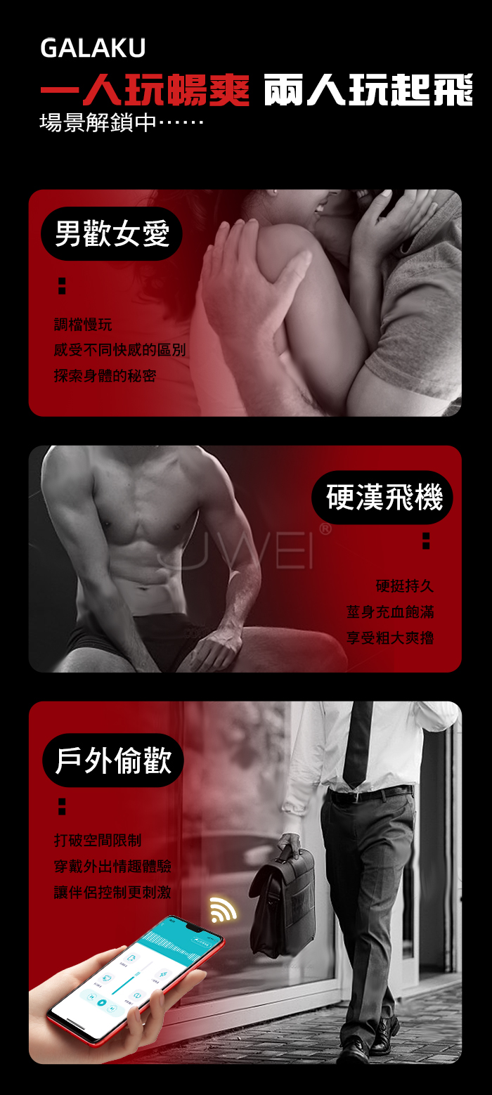 ►您現在的位置:首頁>GALAKU.烈焰紅唇 10頻酥麻強震 邊啪邊震 APP智控震動鎖精環