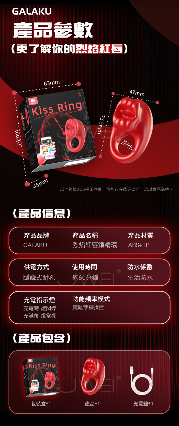 GALAKU.烈焰紅唇 10頻酥麻強震 邊啪邊震 APP智控震動鎖精環