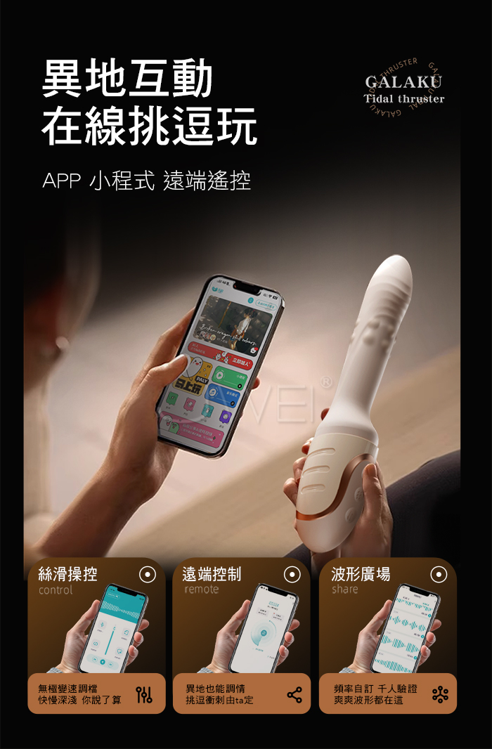 GALAKU.潮汐 10x10頻強勁爽震迅猛搖擺伸縮 雙排12顆滾珠刺激 APP智控衝擊砲機