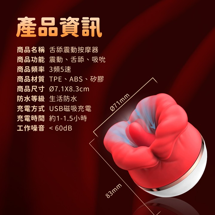 • 三合一功能:震動、舌舔、吸吮一次滿足。