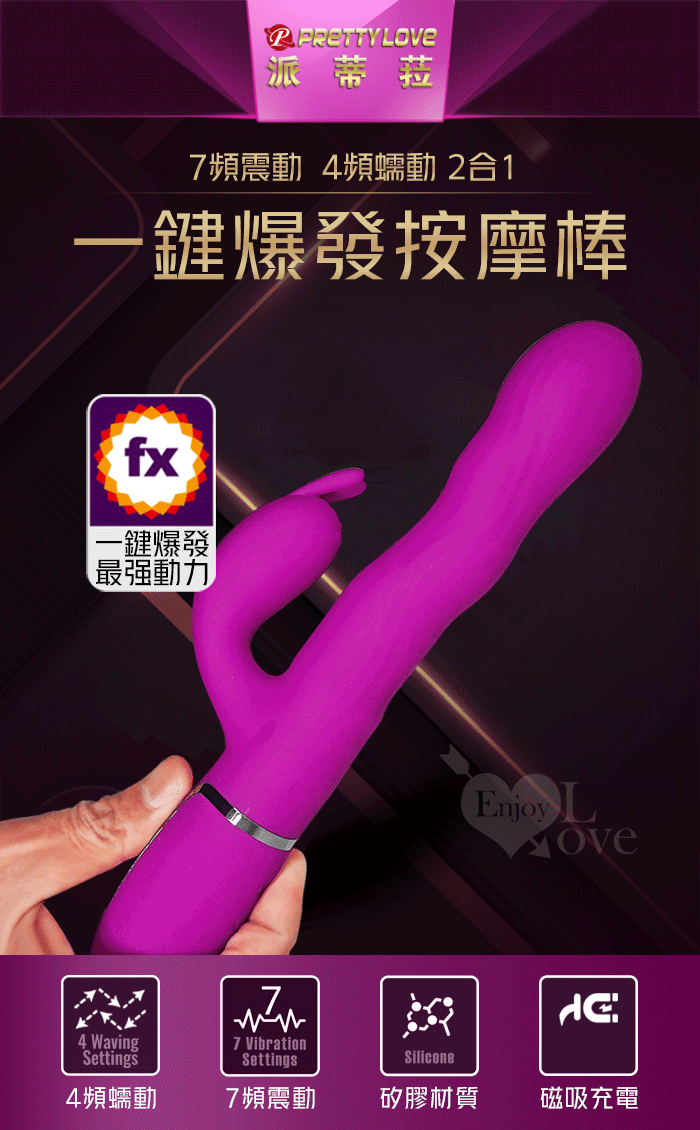 | 派蒂菈 ‧ Loursen 勞爾森 4蠕動+7震動 瘋狂蠕動震感內外夾擊入體按摩棒-洋紅