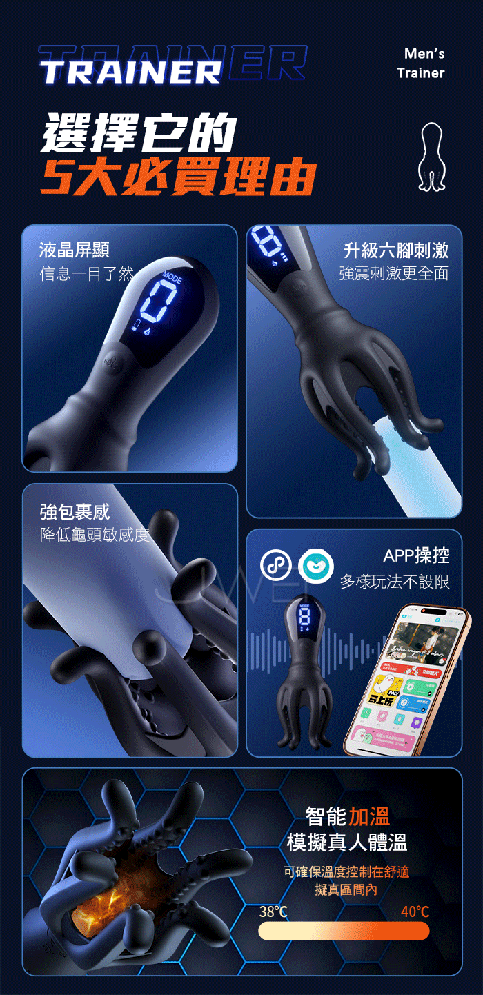 | GALAKU.八爪鱼二代 9頻強震 升級六腳顆粒刺激 APP智控強莖訓練器