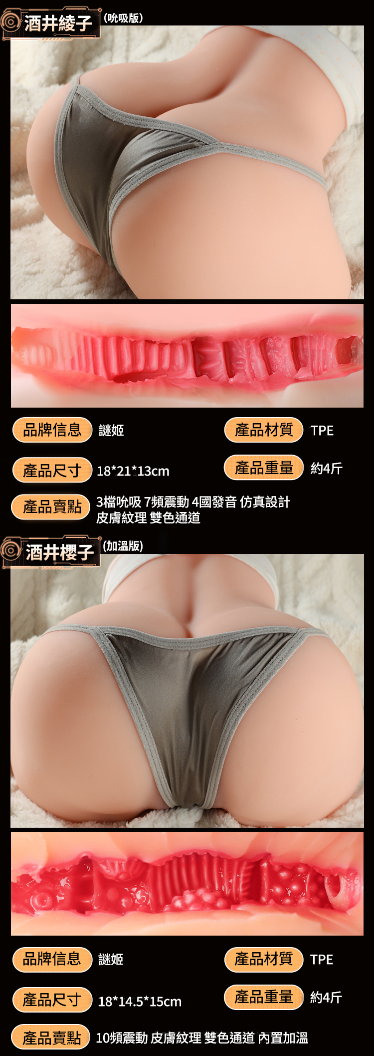 | 謎姬 MizzZee.酒井櫻子.多頻震動+加溫小美臀 酒井系列多功能美臀倒模 男用自慰器 2KG