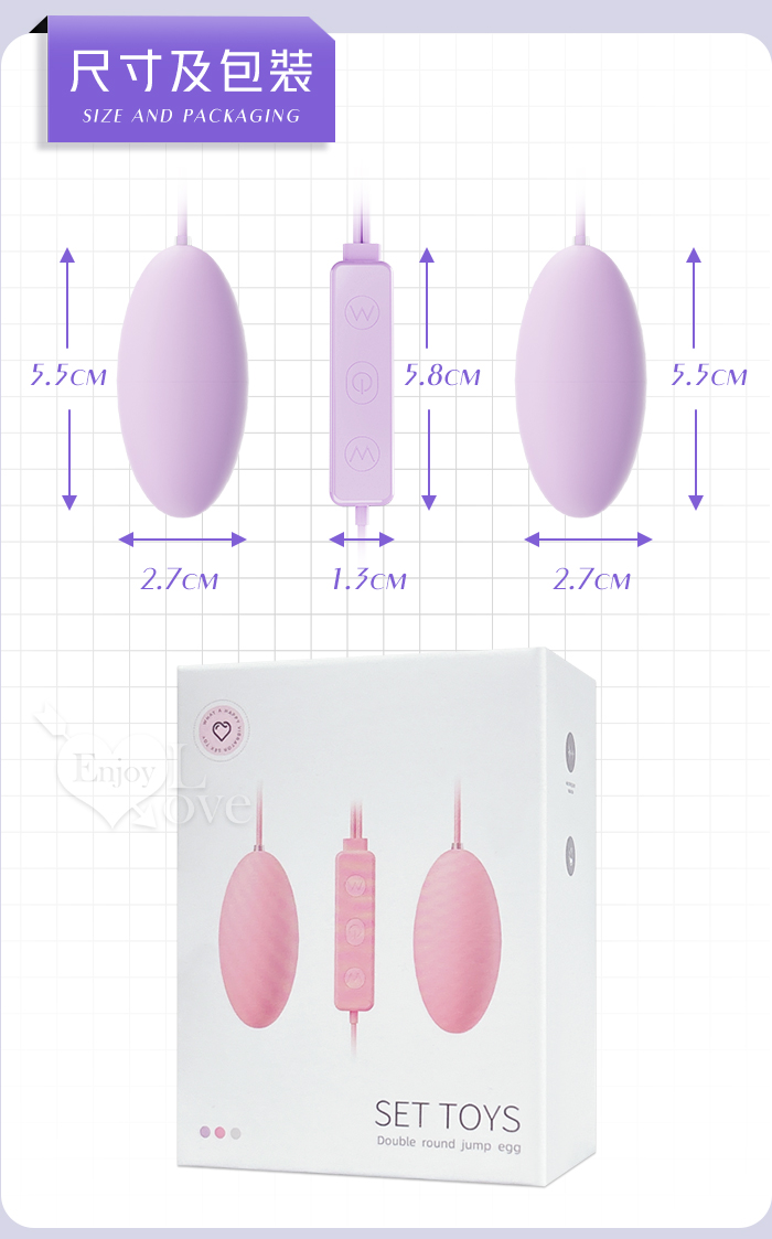| ROSELEX 勞樂斯 ‧ 雙圓跳蛋 18頻調控強震入體雙跳蛋﹝內外刺激+USB直插供電+雙邊可獨立控制﹞淺紫