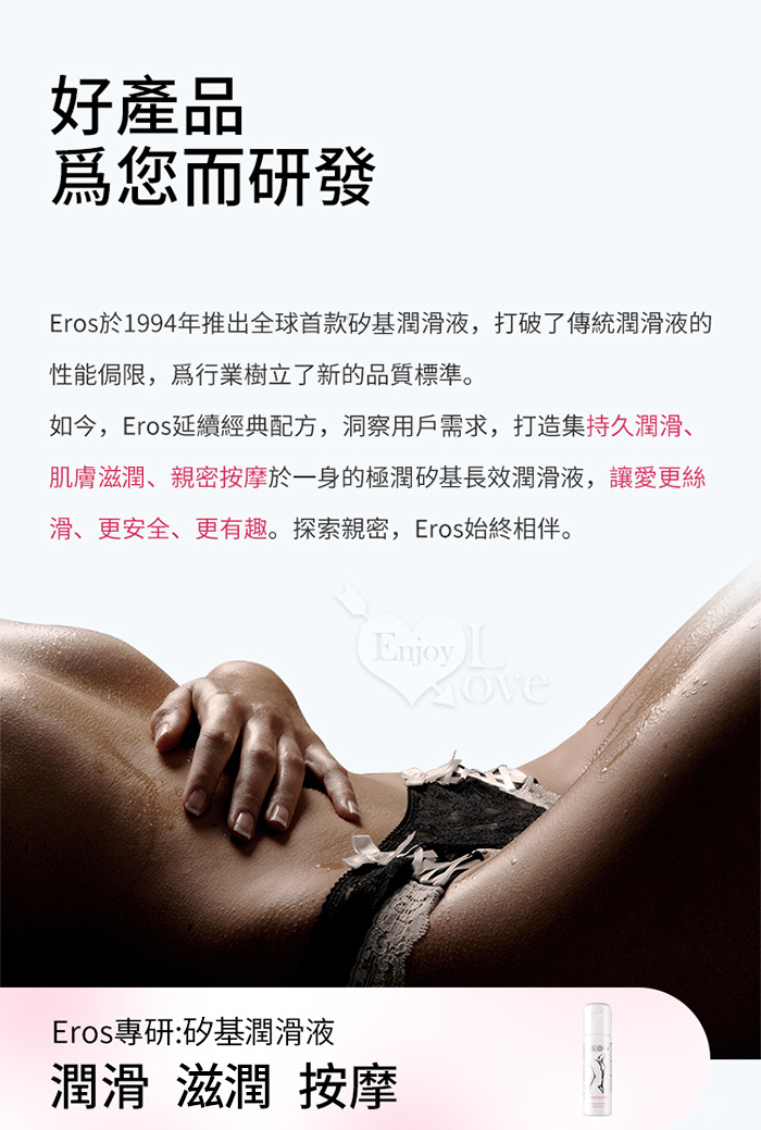 • EROS 女性超濃縮身體潤滑液是一款矽基潤滑劑,專為幹性及敏感性肌膚女性的需求定制。