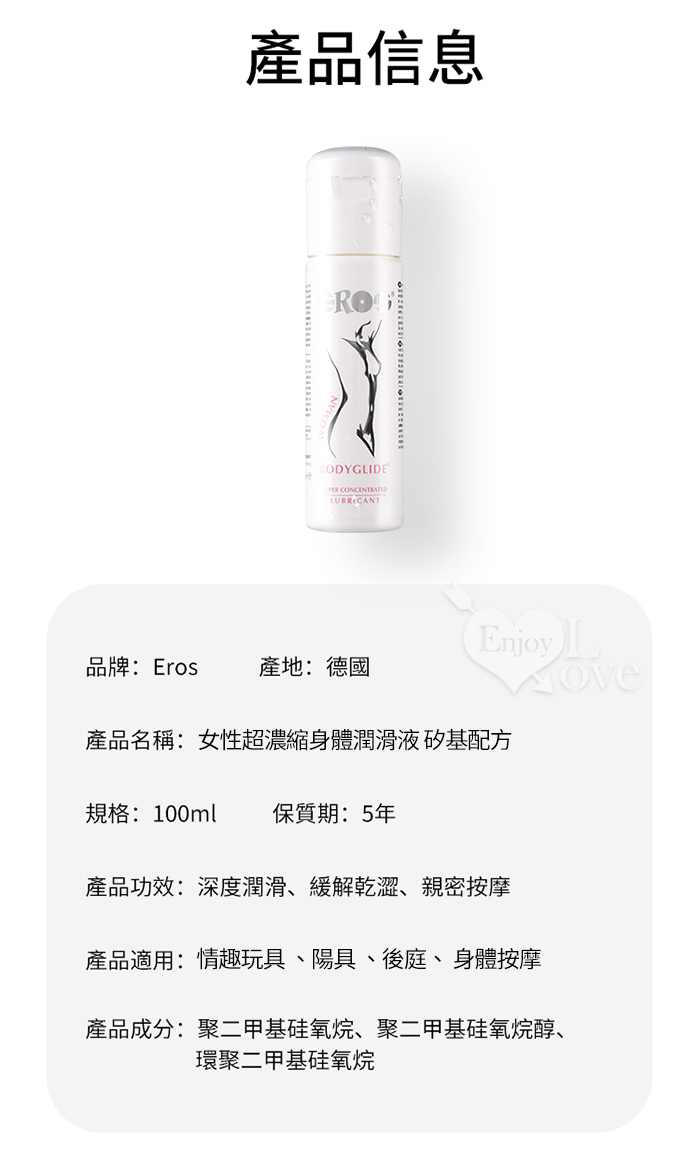 | 德國Eros ‧ 女性超濃縮身體潤滑液 矽基配方~適配乾性及敏感性肌膚~ 100ml