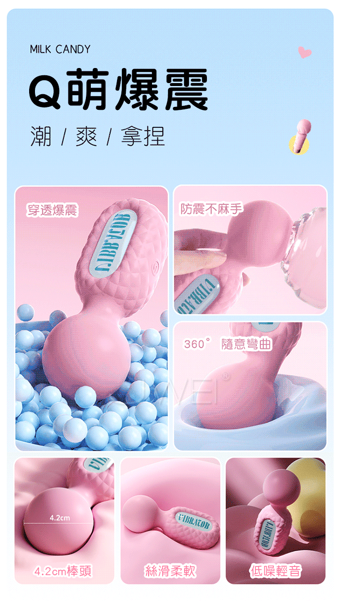 ►您現在的位置:首頁>謎姬 MizzZee.奶糖.10頻超爽爆震 靈活頭部 防震不手麻 Q萌迷你AV棒