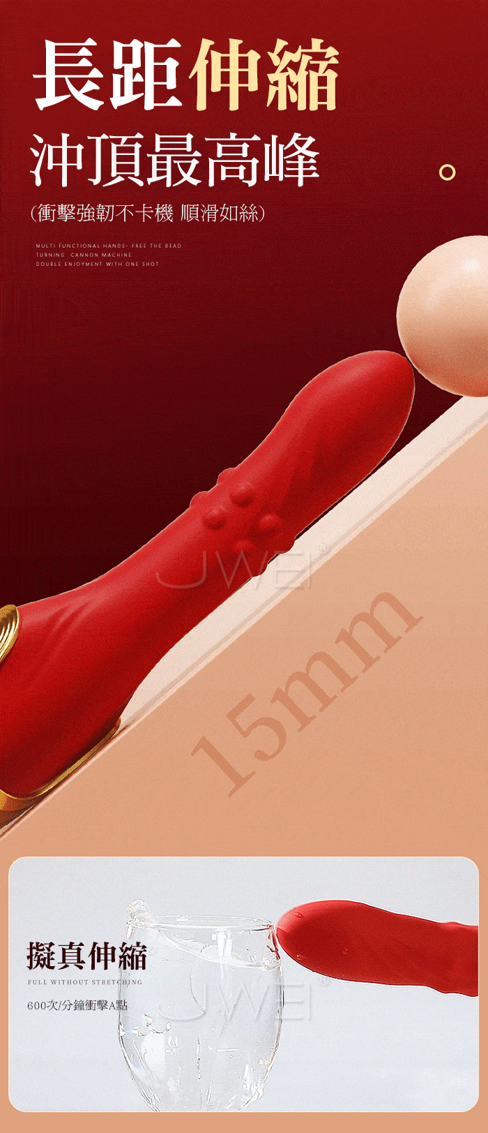 | 謎姬 MizzZee.紅舞戰姬.10x10頻 伸縮轉珠+脈衝強震 APP智控全自動滾珠衝擊砲機【附砲架】