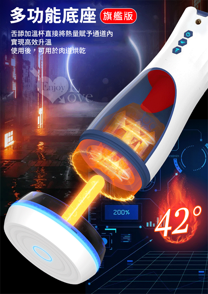 Hgod 007-II 旗艦版 ‧ AI新智能自動舌舔+吞莖吮吸+分體加熱快感電動飛機杯﹝9頻收縮吸吮X9頻舌擺舔+淫聲耳機+手機架﹞