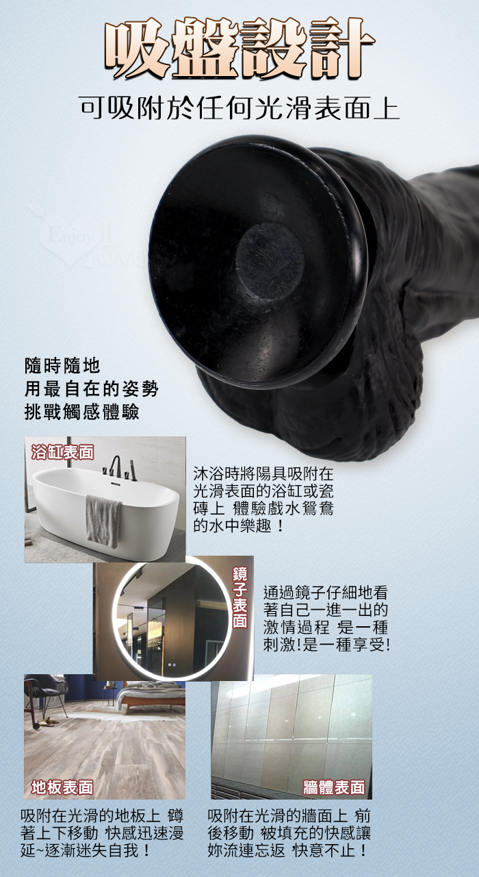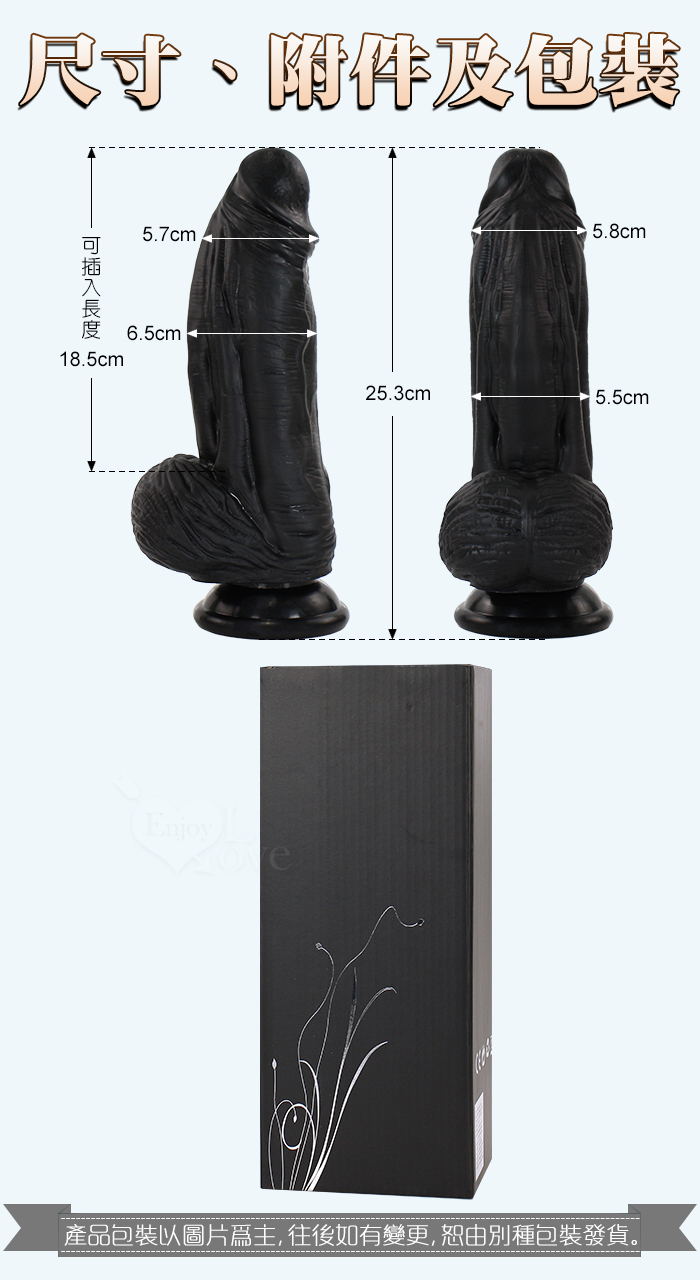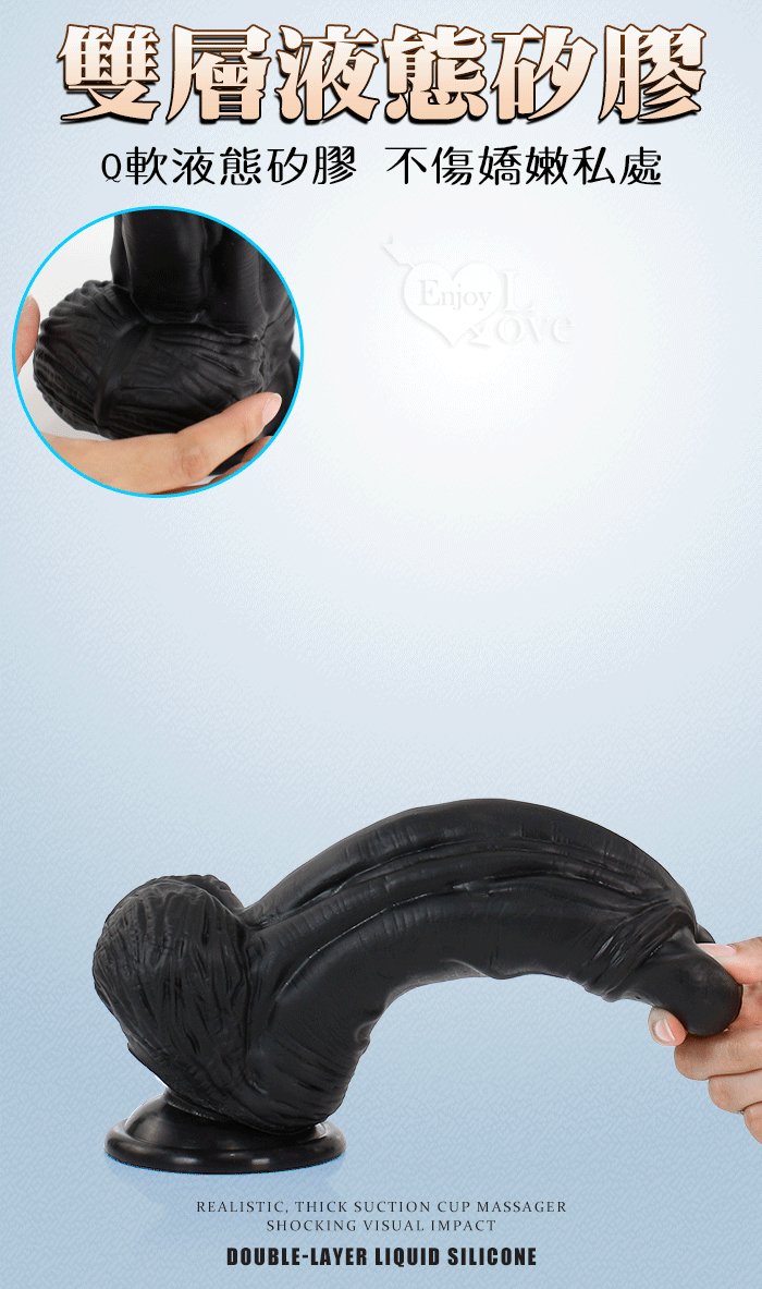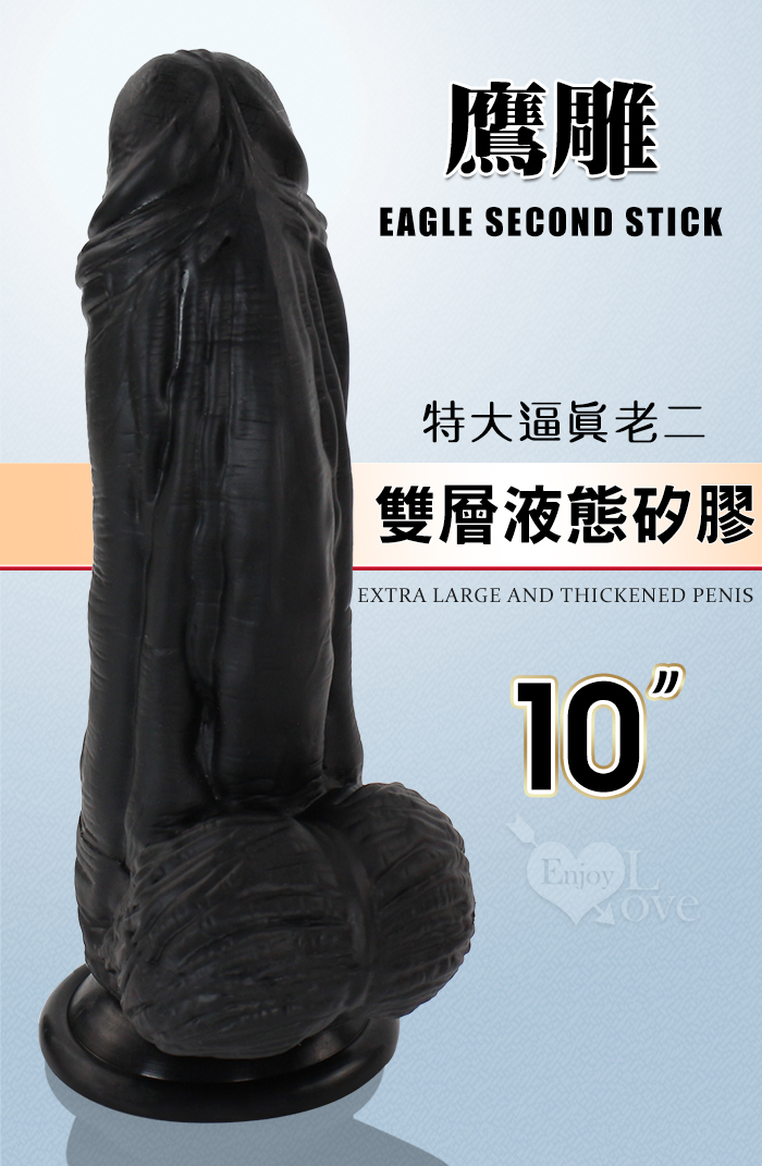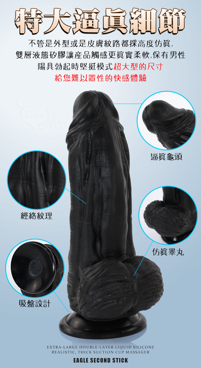 Eagle 鷹雕~特大號雙層液態矽膠吸盤式逼真粗壯按摩棒-10吋/直徑6.5公分﹝黑色﹞
