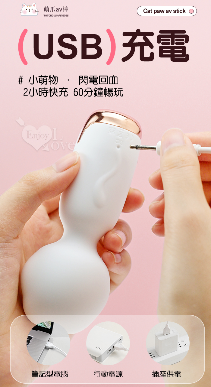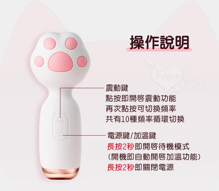 ROSELEX 萌爪AV棒 ‧ 可愛小貓爪加溫震動棒-10頻震動陰蒂刺激調情自慰 - 粉