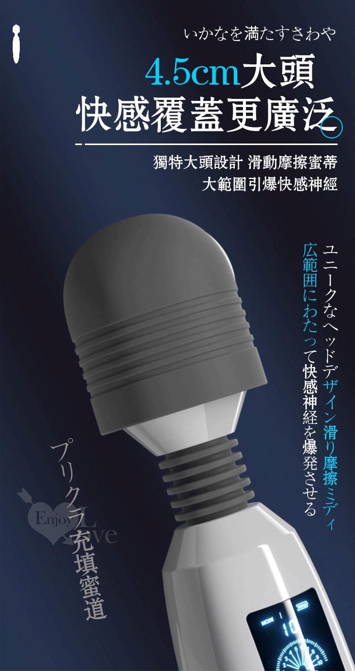 | ROSELEX 潮吹王AV棒 ‧ 女優を絕叫 液晶螢幕顯示9頻X8級速大頭強震按摩棒-灰白﹝智能加溫款﹞
