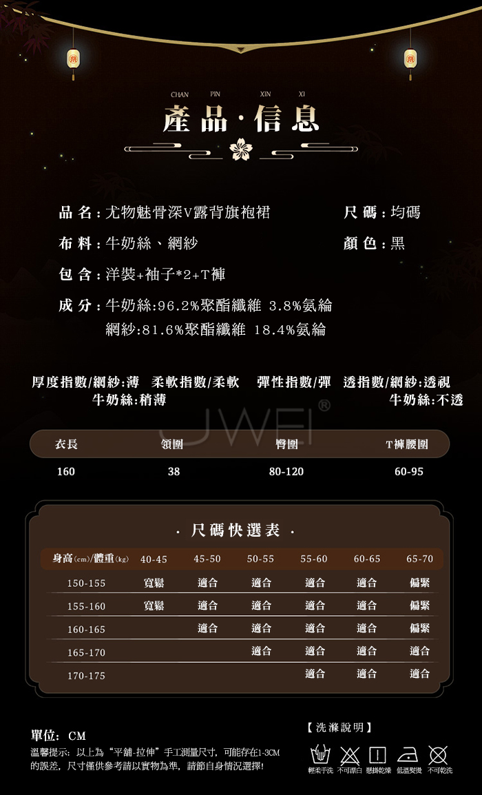 ■內容物:連身裙+袖子*2+T褲 ■適穿尺寸:FREESIZE ■材質:牛奶絲、網紗 ■彈性:彈 ■未撐開平量尺寸正負誤差1~2cm,1吋=2.54cm ■注意事項:基於保障消費者個人衛生,此貼身衣物恕不接受退換貨。 (如為商品本身暇疵,接受七日內換貨,請勿試穿,謝謝您)
