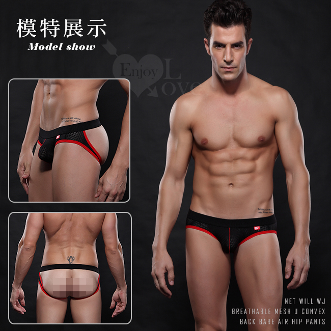 | 【網將WJ】透氣網孔U凸後裸空翹臀內褲﹝黑 M﹞