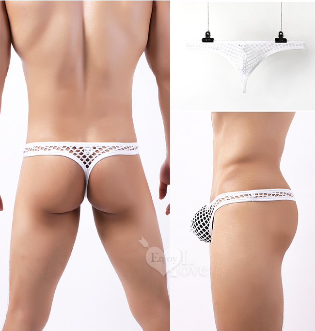 | 《 Enjoy Love 》性感半透大網孔男士丁字褲 - 白﹝M﹞