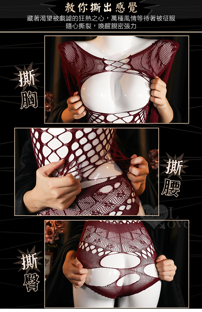 可撕鏤空網紗連身衣|高彈裸膚透視網眼・蜜桃美臀造型