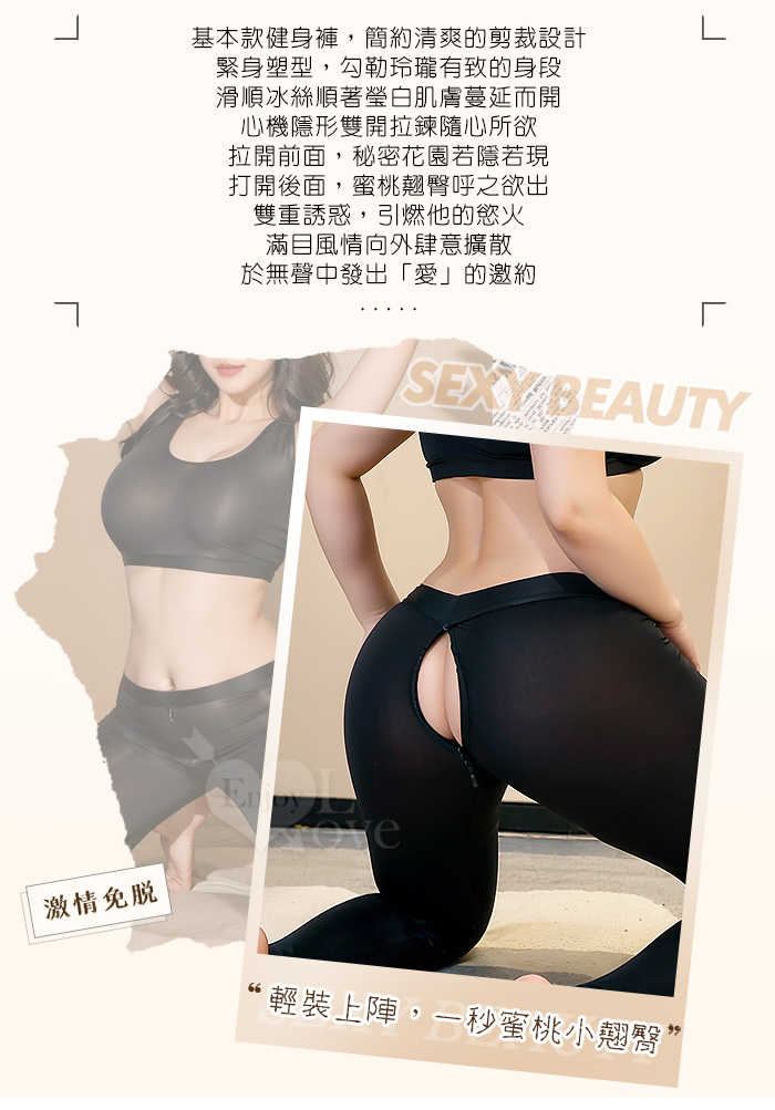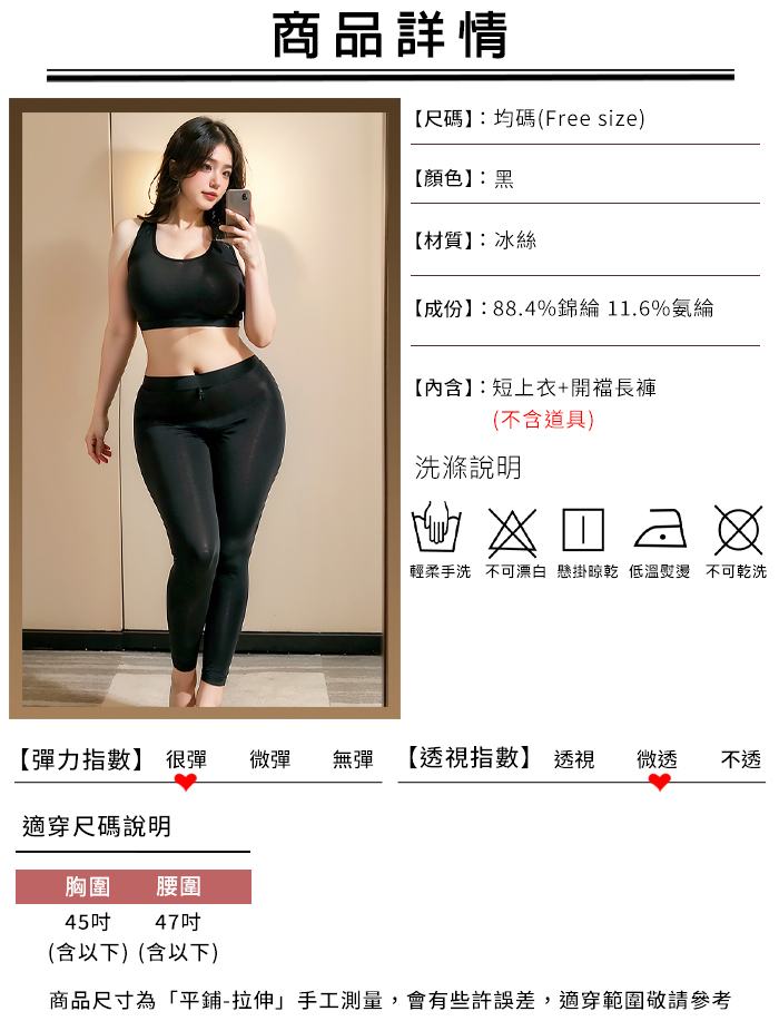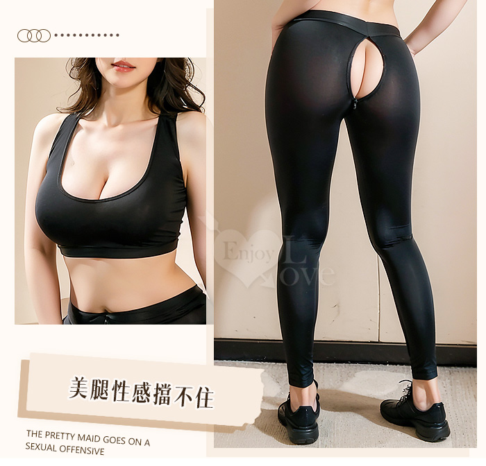 【棉花糖女孩】大尺碼情趣睡衣!冰絲順滑緊身小可愛 × 雙頭拉鍊免脫瑜珈褲|機能二件組﹝黑﹞