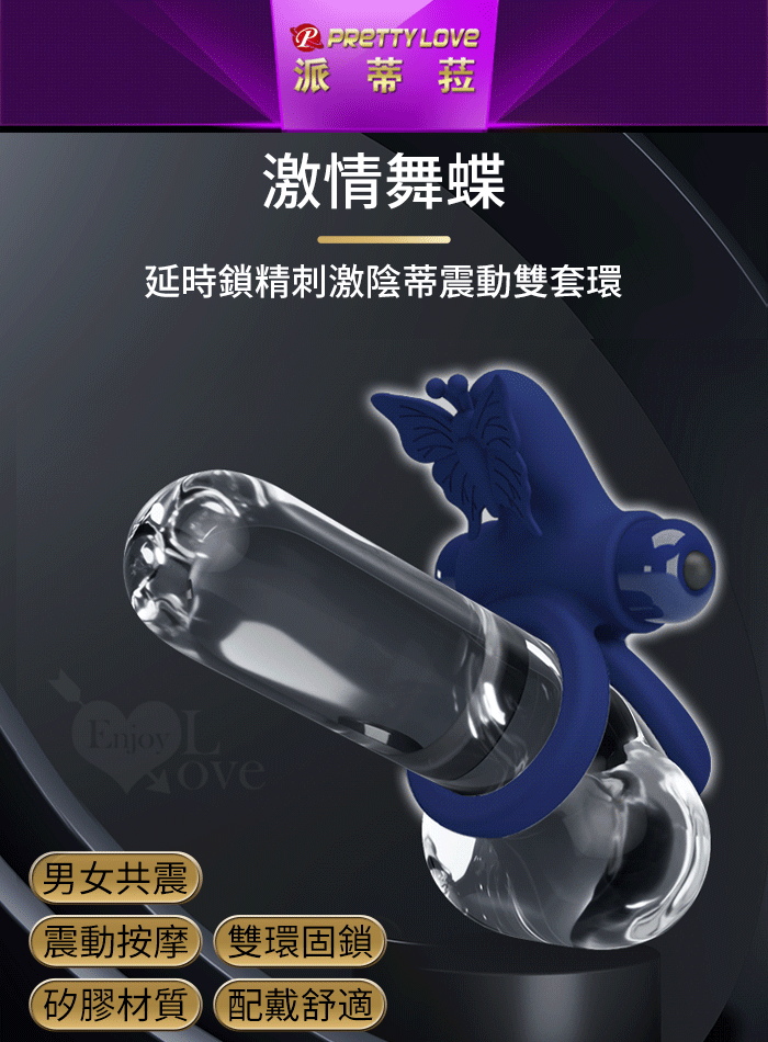 | 派蒂菈 ‧ 激情舞蝶 延時鎖精刺激陰蒂震動雙套環﹝10頻強震+雙環固精+舞顫陰蒂+舒適矽膠﹞