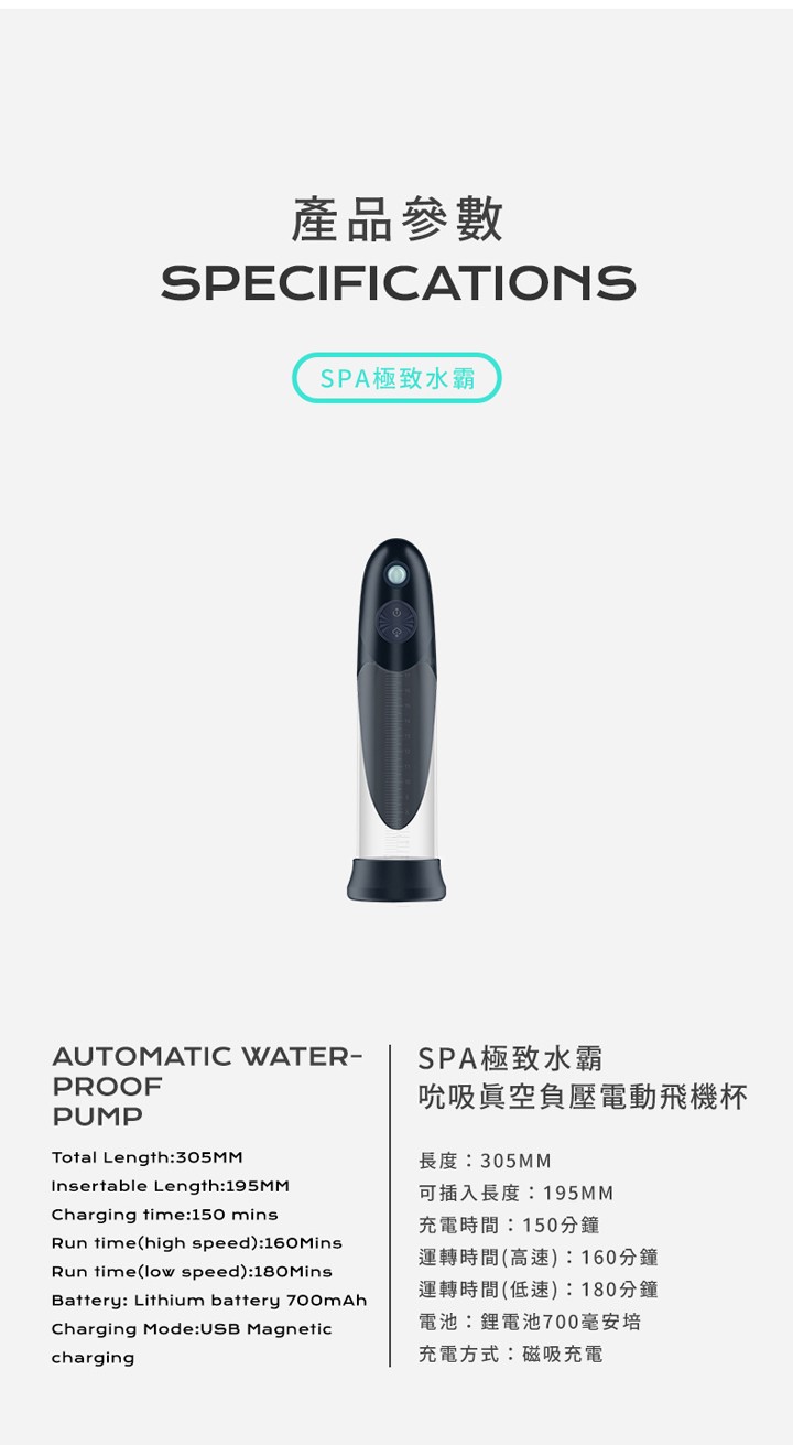 WATER PUMP水幫浦 全防水真空三段吮吸 輕鬆鍛鍊陰莖幫浦 電動飛機杯 - USB磁吸充電式