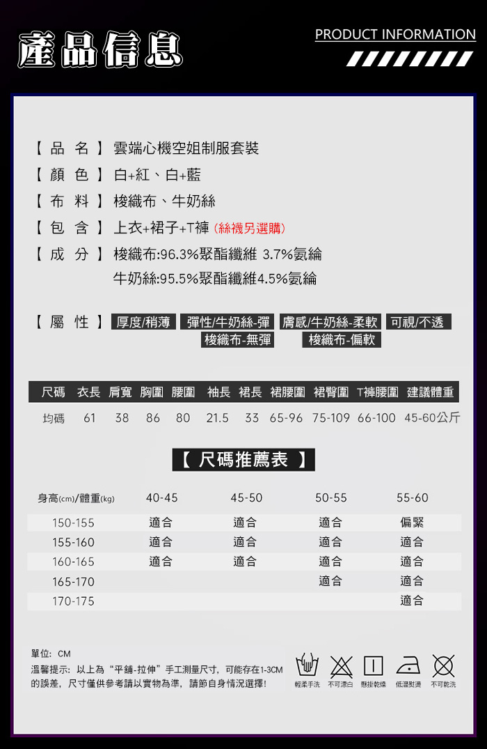 2.基於保障消費者個人衛生,情趣衣物類恕不接受退換貨,如為商品本身暇疵,接受三日內換貨,請勿試穿。