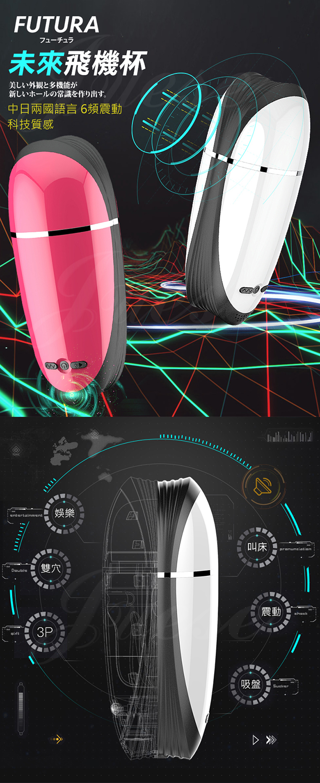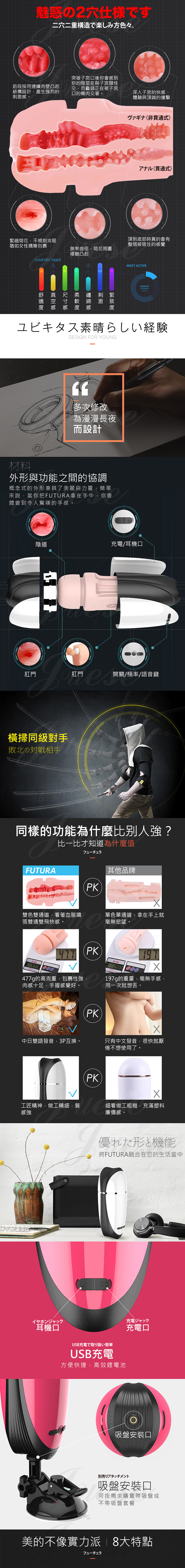 | 未來FUTURA 中日兩國語言6段變頻震動吸盤自慰杯-紅(陰唇+肛門)