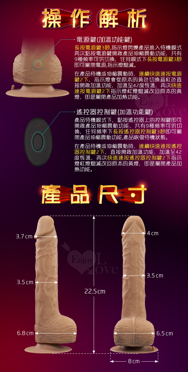 ►您現在的位置:首頁>炮皇 ‧ 無線遙控大活塞伸縮震動高仿真肉感老二棒﹝9頻調控+智能加溫+強力吸盤+USB充電﹞