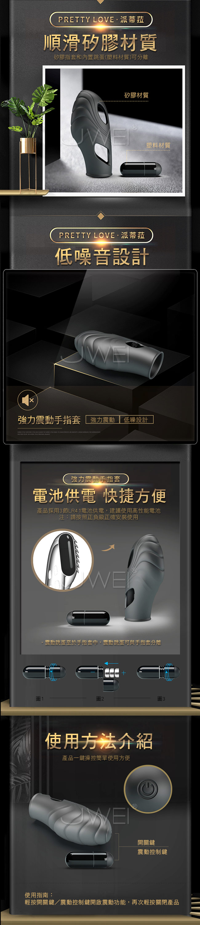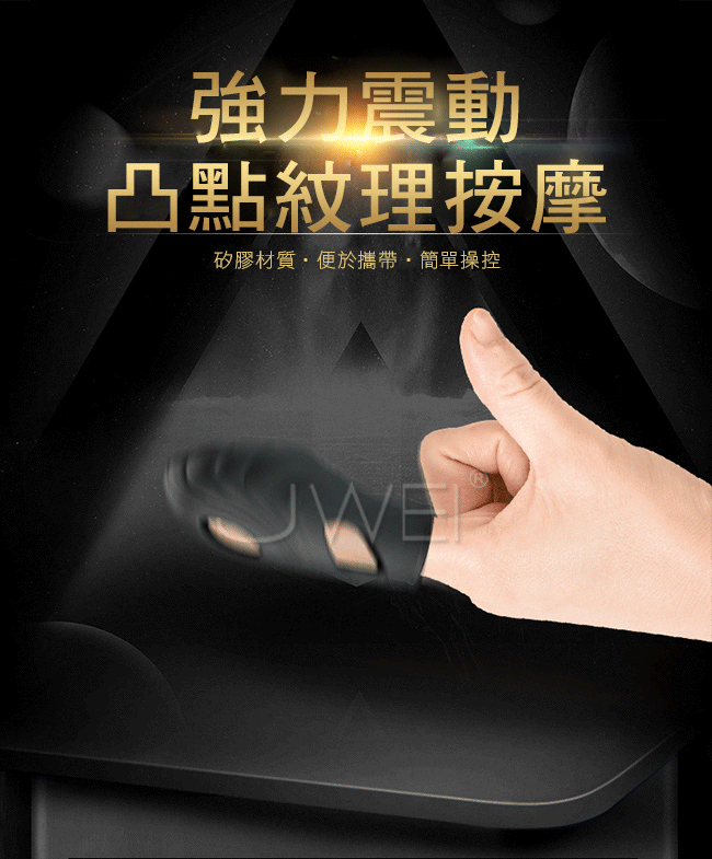 此款矽膠強力震動指套按摩器內置強勁震動跳蛋,可以內外按摩。棒身凹凸紋理鏤空設計,增加內外兩點摩擦按摩刺激您的敏感點。且本產品採用順滑矽膠材質親膚質感讓您使用上舒適安全喔~