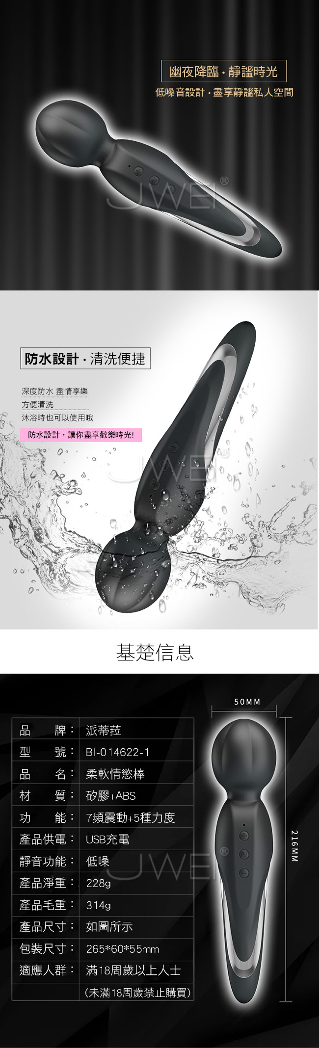 ■特色:7段變頻震動、5檔力度、防水設計、低噪設計