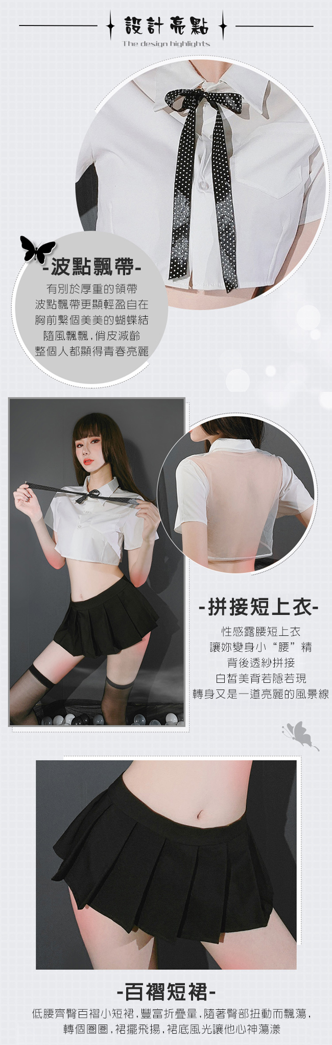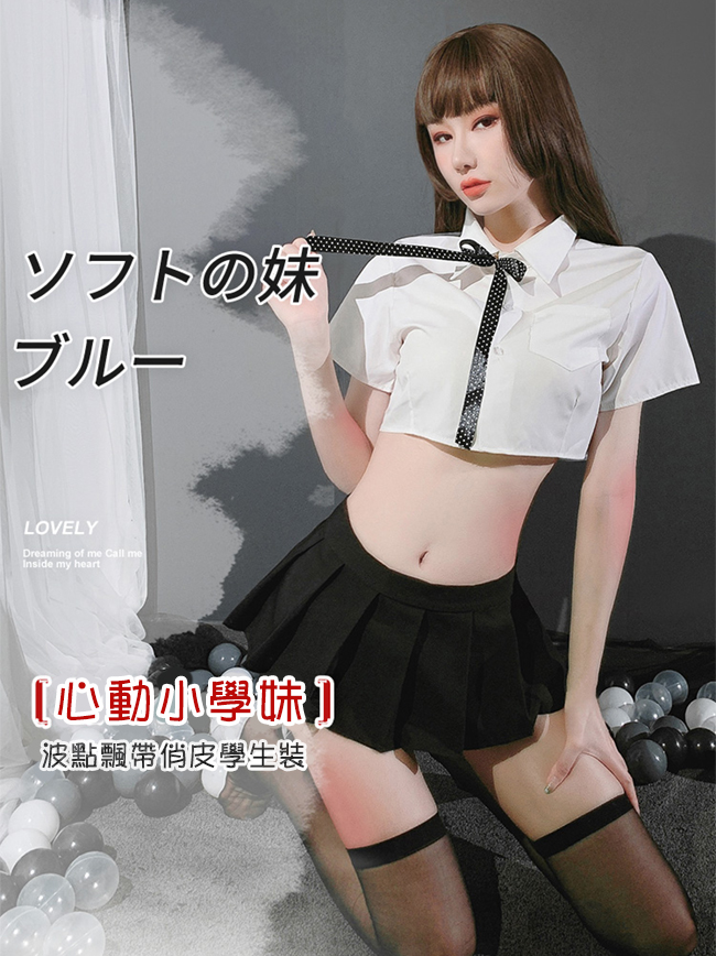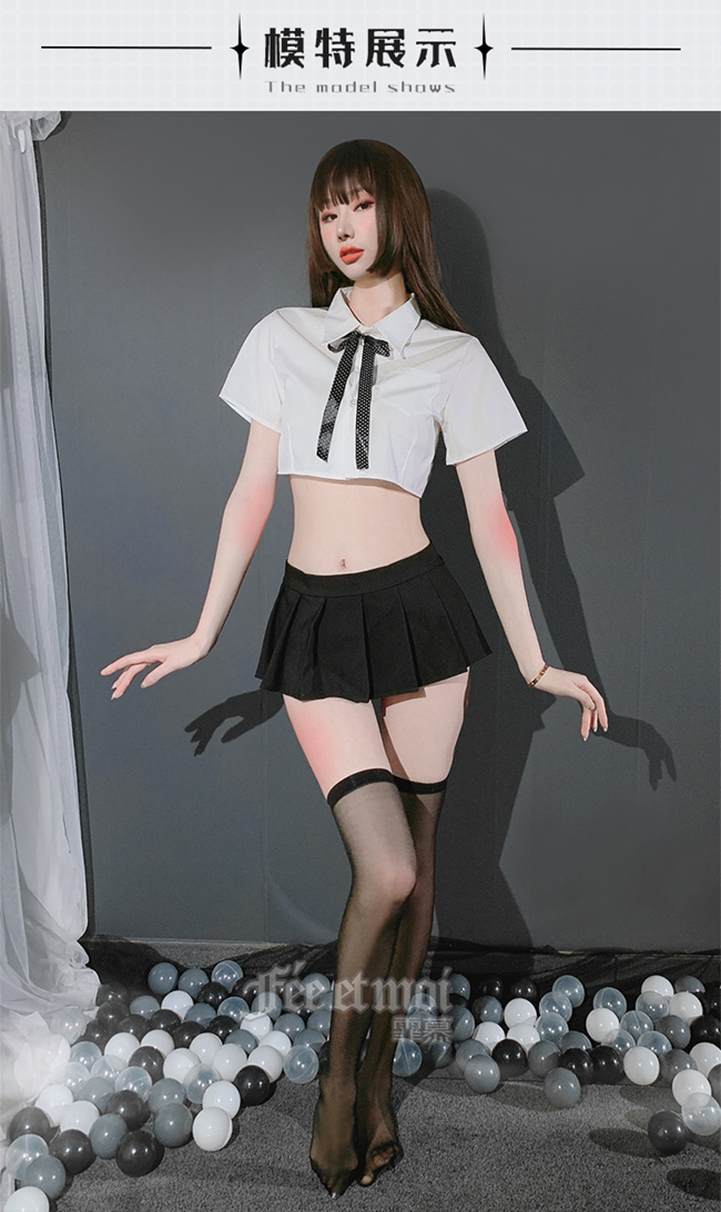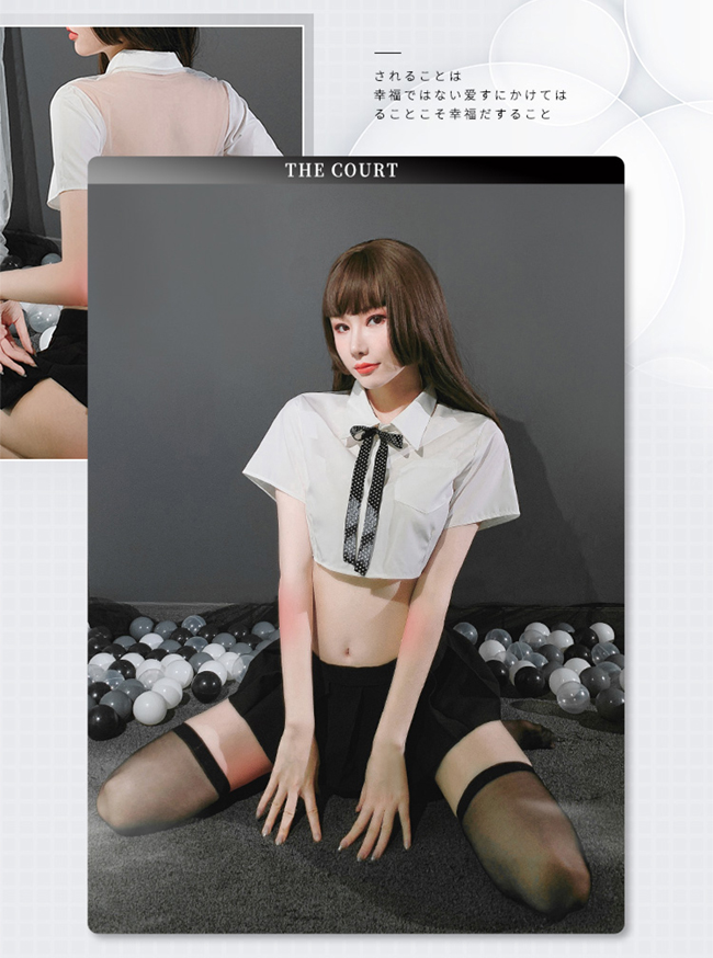 《FEE ET MOI》學生角色扮演服!後背裸肌透紗拼接襯衫百摺短裙四件式套裝