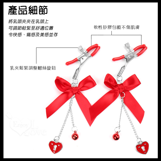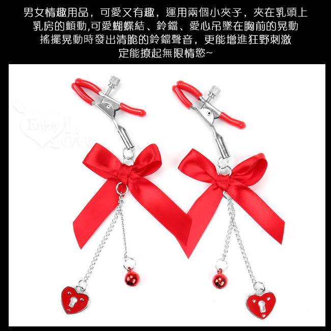 【乳の虐戀】可愛蝴蝶結 愛心 鈴鐺 吊墜乳夾 - 紅色﹝一對裝﹞