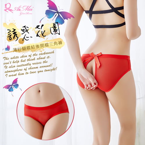 | 誘惑花園!薄紗蝴蝶結後開檔三角褲﹝紅﹞