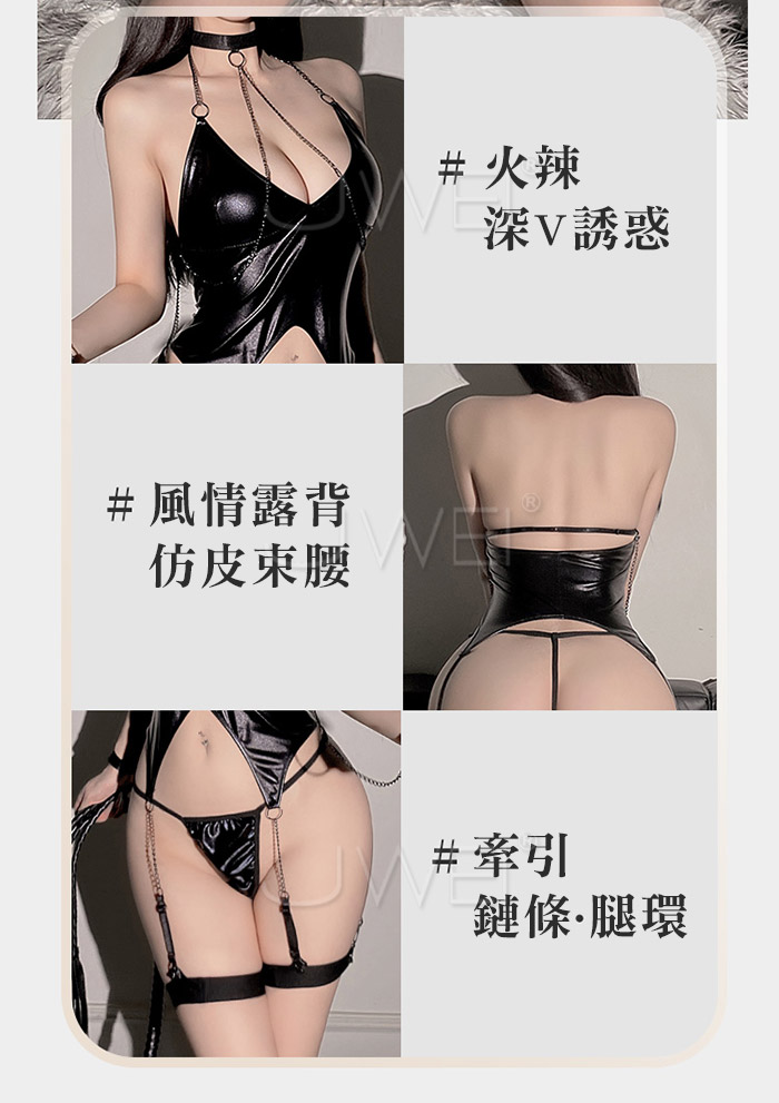 首頁>暗夜女王.火辣皮衣V字誘惑束腰牽引鍊條三件組