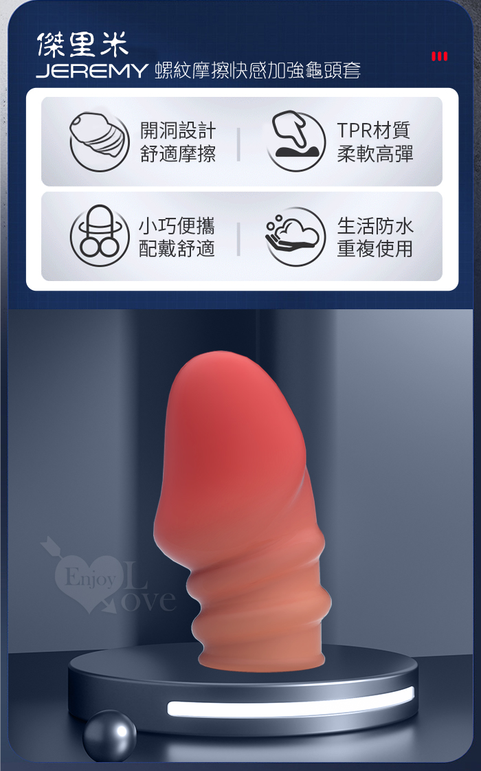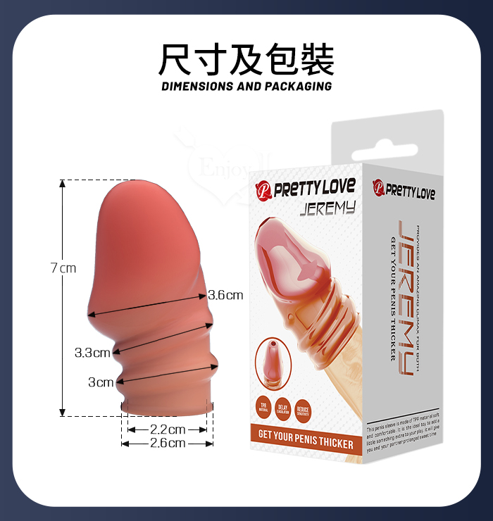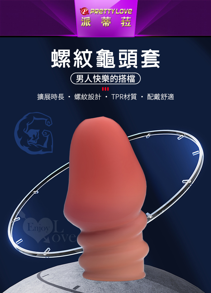 PRETTY LOVE 派蒂菈 ‧ JEREMY 傑里米 螺紋武裝強化龜頭套 - 頭部出精口設計﹝棕膚色﹞