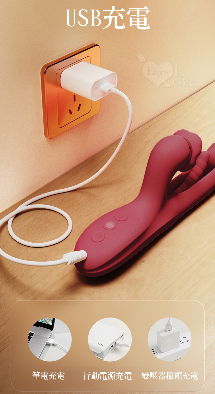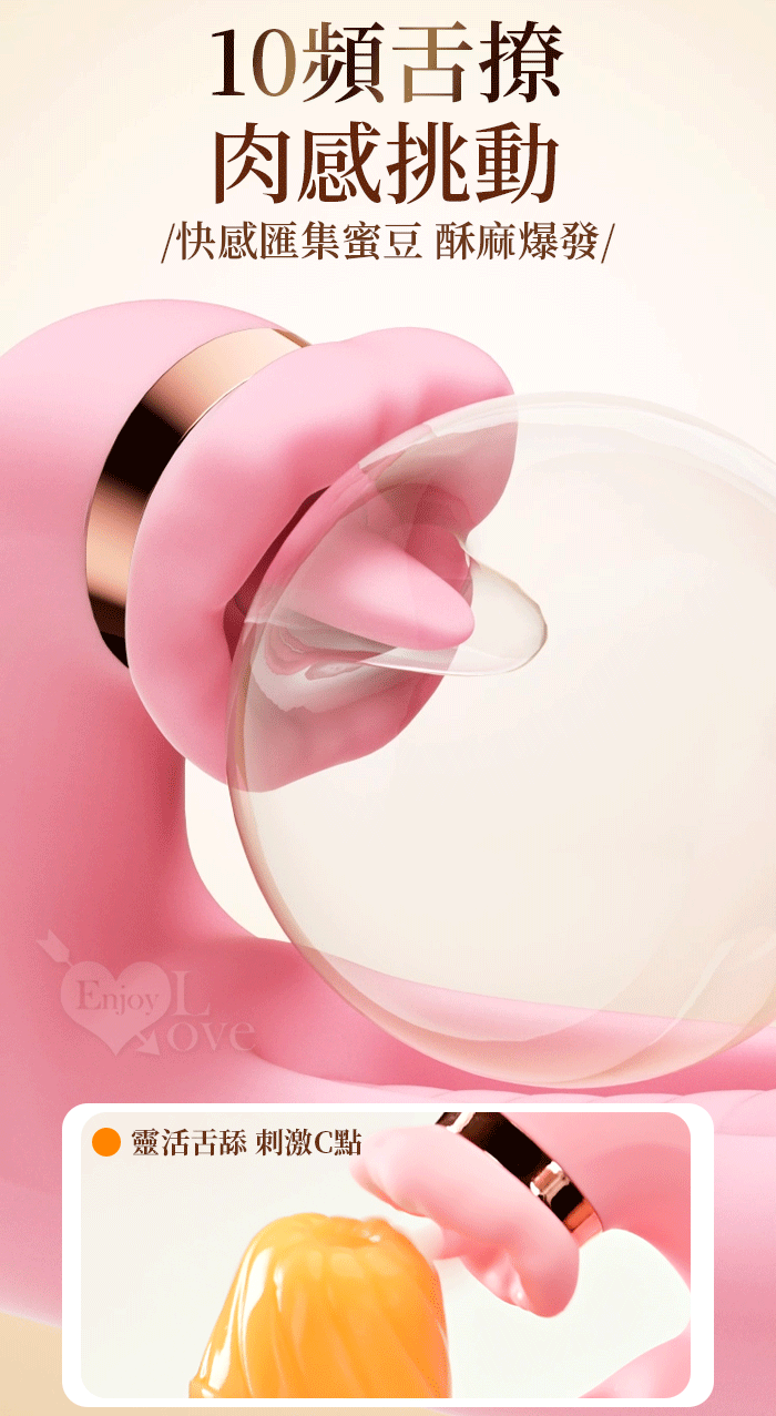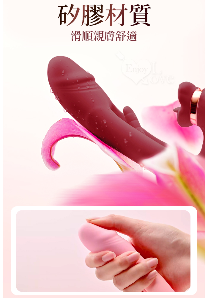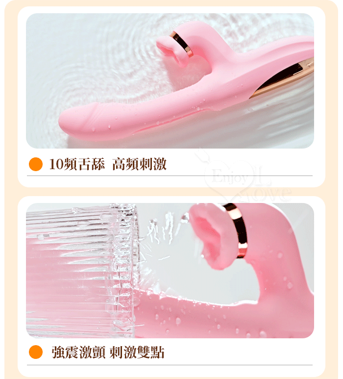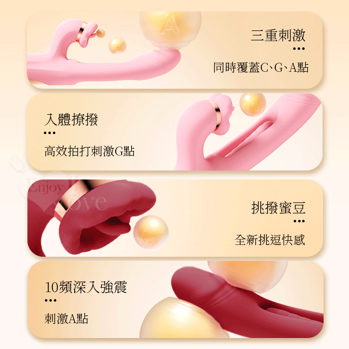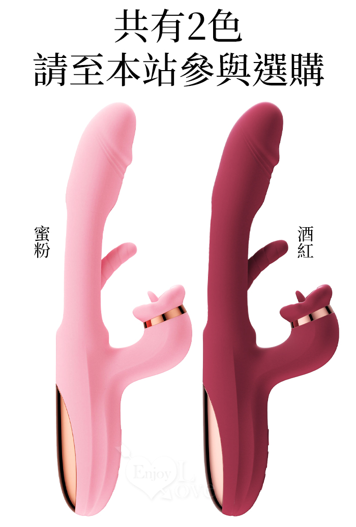 ROSELEX 勞樂斯 ‧ 夕顏 三重大刺激多功能按摩棒﹝10頻調控+內壁拍打+高頻舌撩+入體強震﹞蜜粉