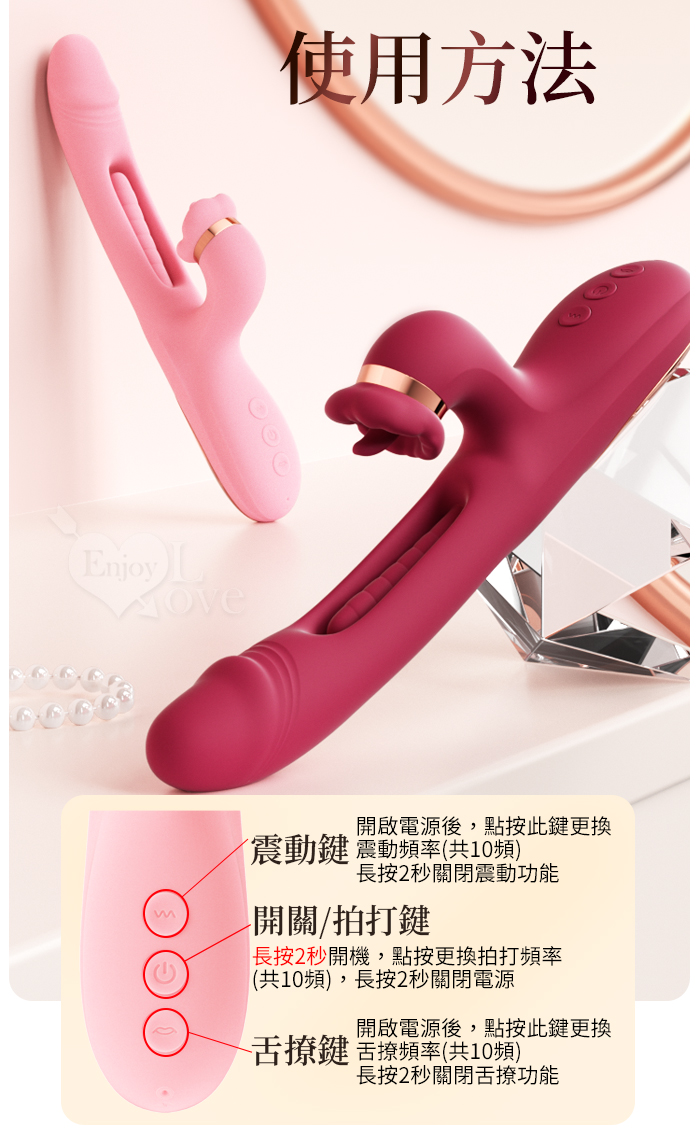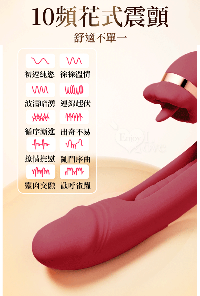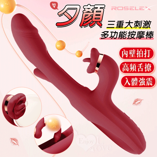 ROSELEX 勞樂斯 ‧ 夕顏 三重大刺激多功能按摩棒﹝10頻調控+內壁拍打+高頻舌撩+入體強震﹞酒紅