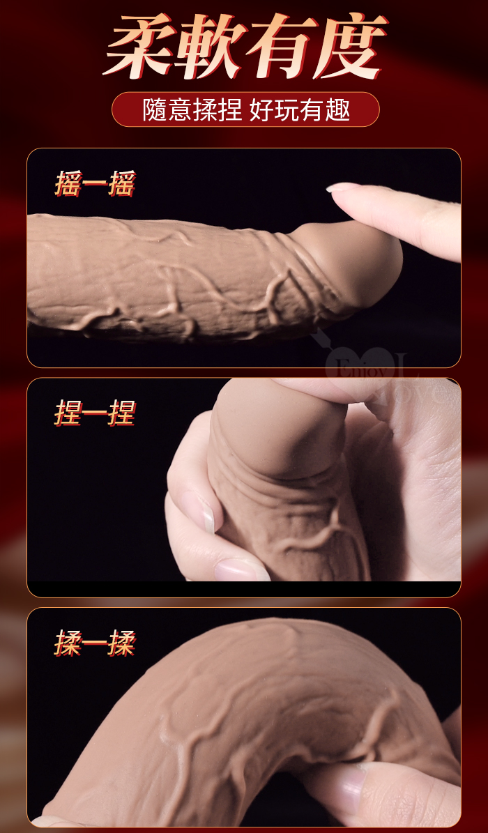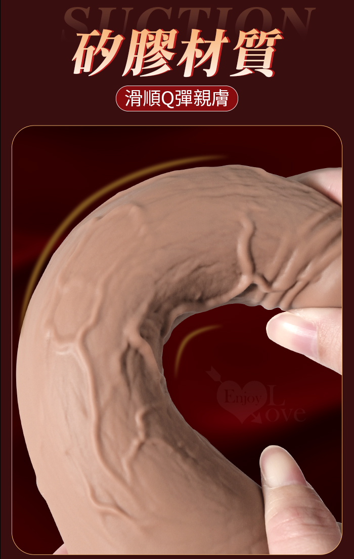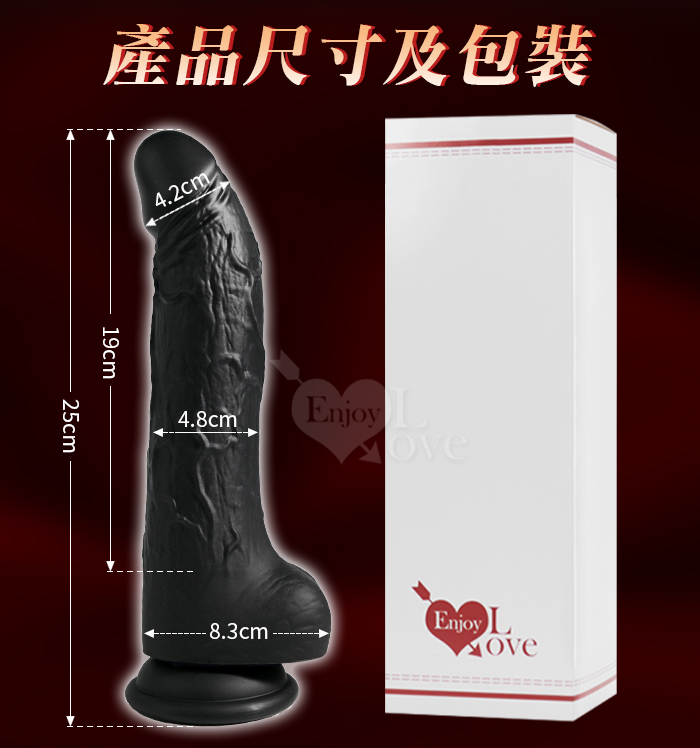 勁爆大男人 ‧ 真肉感矽膠軟Q肉彈加固吸盤帶蛋蛋仿真大老二棒﹝黑色﹞