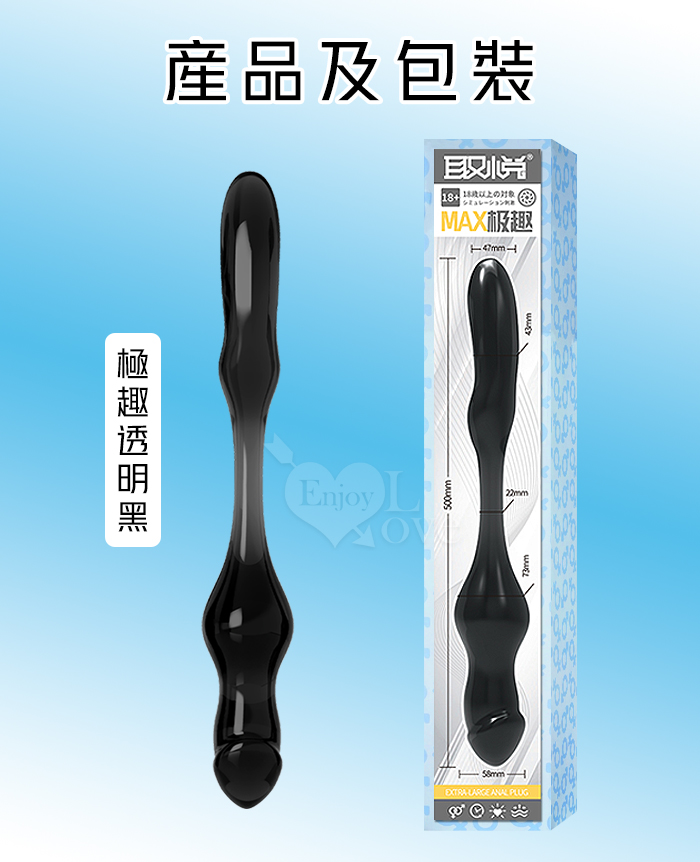 | 取悅 ‧ MAX極趣!XXL巨大型雙頭水晶按摩棒-前陰後庭/男女皆適用﹝透明黑﹞