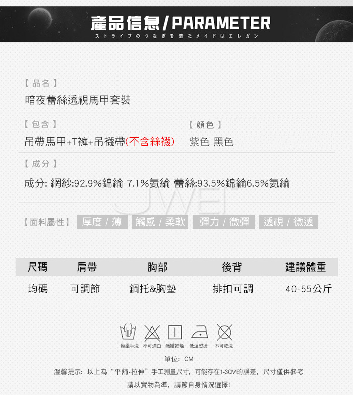 ■內容物:吊帶馬甲+T褲+吊襪帶